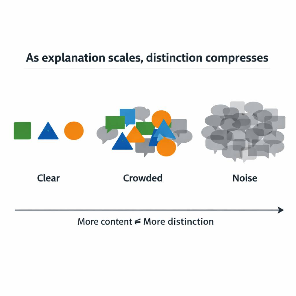 This is where the pattern is often misread internally. Engagement becomes inconsistent, and the response is to increase clarity, expand messaging, and add more explanation. However, the market is not hesitating because it lacks information. It is encountering similar information from multiple sources. Research from Edelman in partnership with LinkedIn shows that decision-makers continue to consume thought leadership, but struggle to distinguish between sources when perspectives begin to overlap. This is not a clarity problem. It is a saturation condition, and in saturation, additional explanation does not strengthen the signal, it reduces perceived difference.